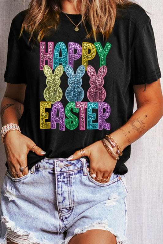 Letter Round Neck Half Sleeve T-Shirt