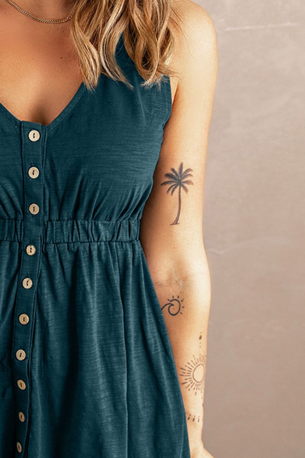 Ärmelloses Magic-Kleid mit Knopfleiste vorn, Empire-Taille und Schlitz
