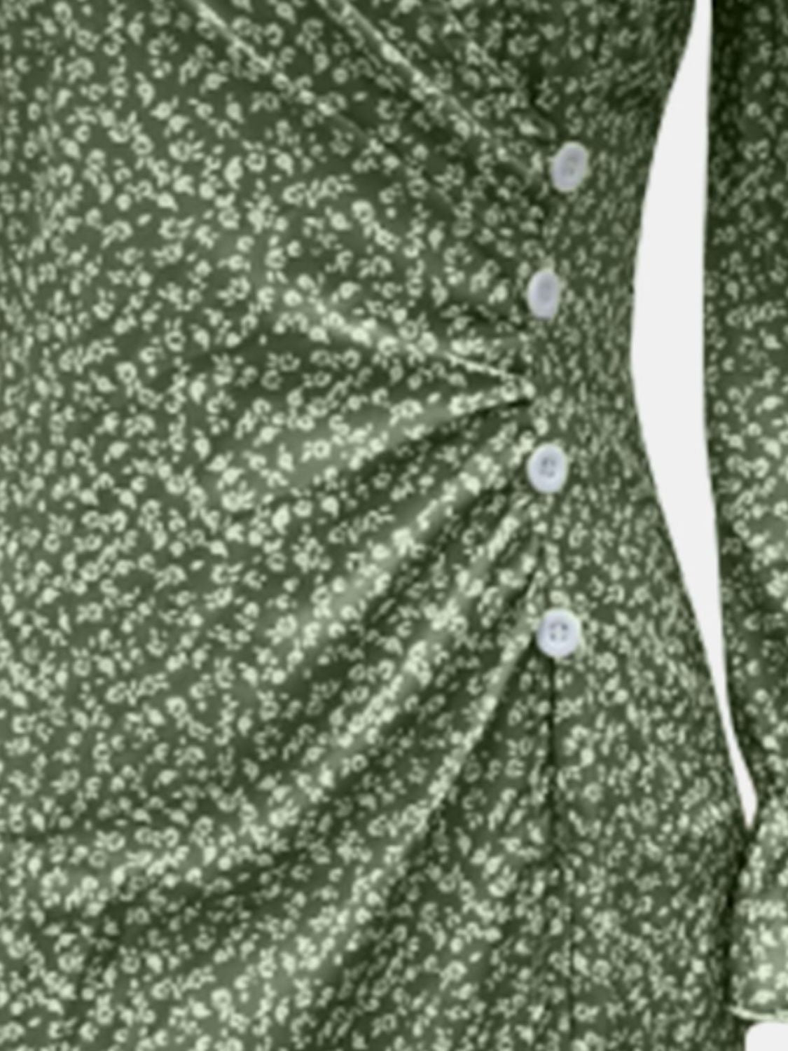 Bedrucktes, langärmliges Midikleid in Übergröße
