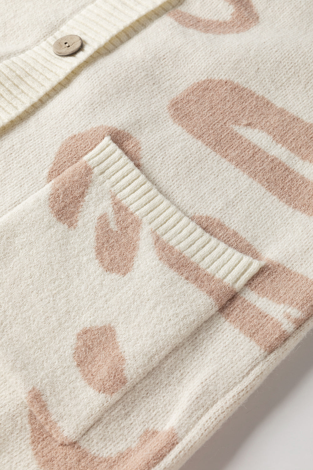 Strickjacke mit Leopardenmuster und V-Ausschnitt und Knopfleiste