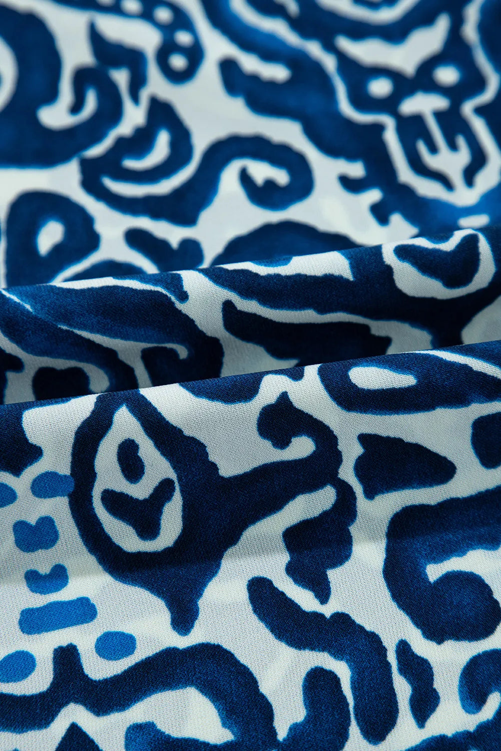 Bedrucktes, langärmliges Kleid mit Krawattenkragen