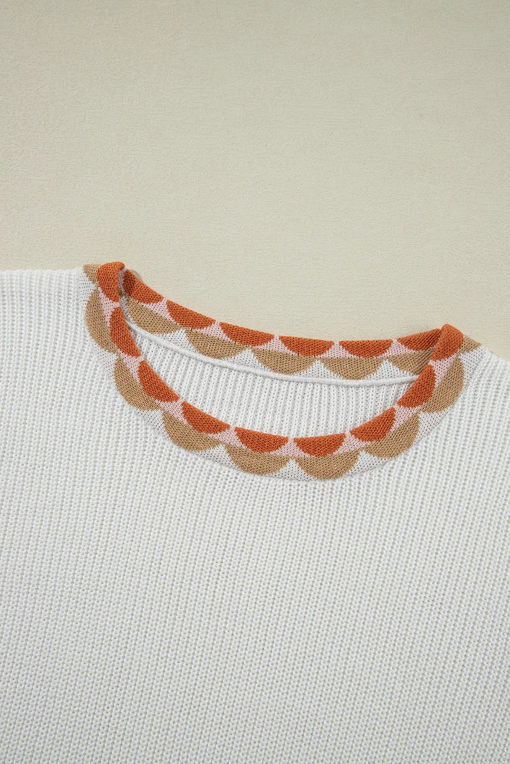 Strickoberteil mit Rundhalsausschnitt und Laternenärmeln