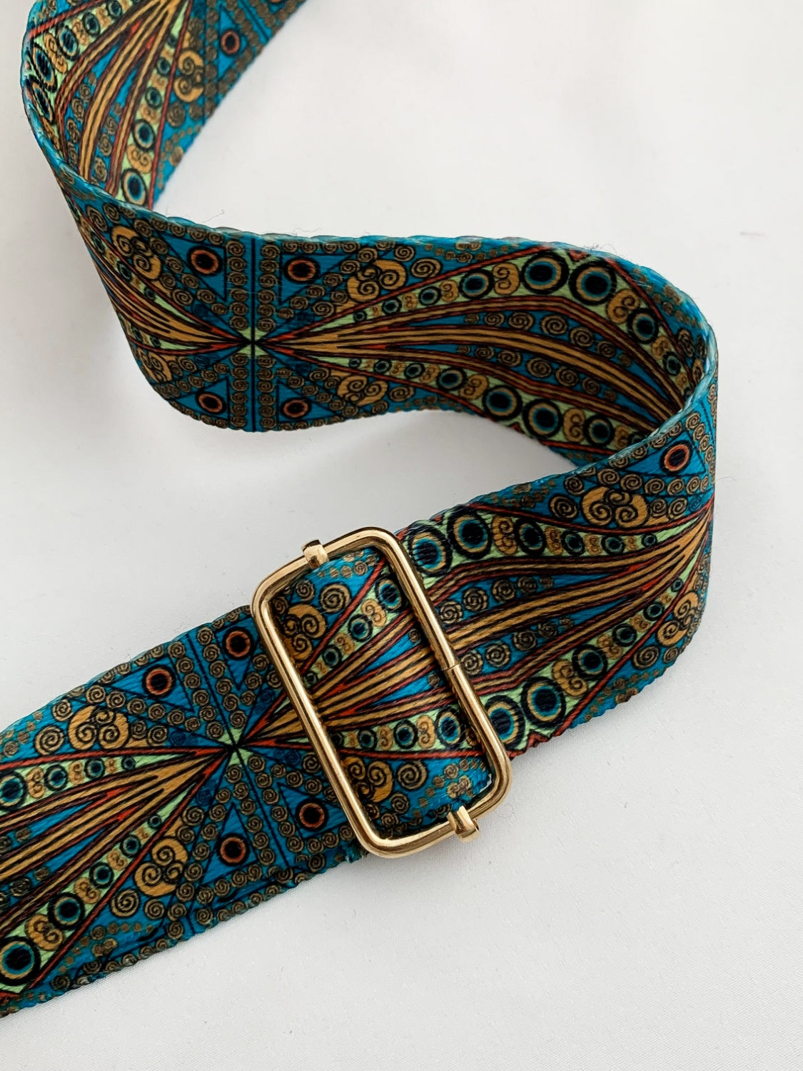 Umhängetasche mit Quaste, bedrucktem Riemen und Kassette aus PU-Leder