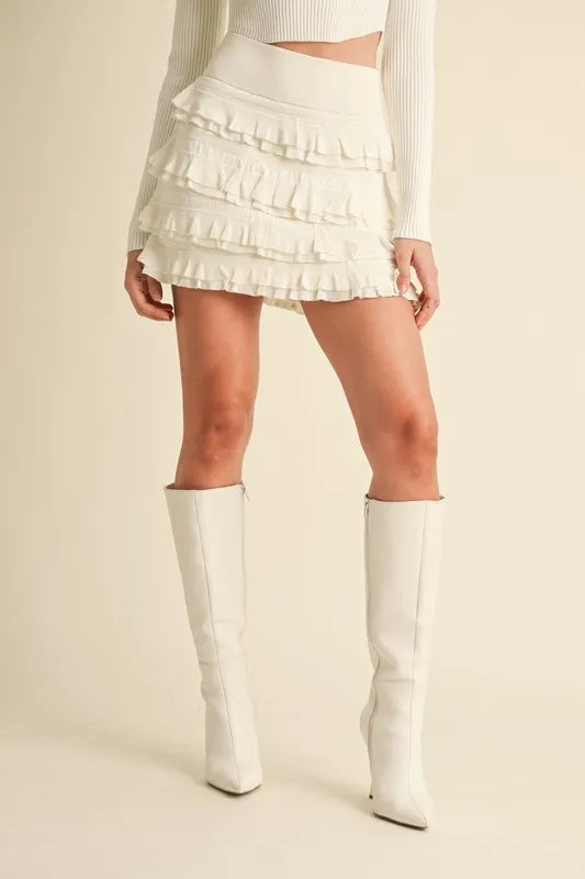 Lace Trim Asymmetrical Ruffle Mini Skirt
