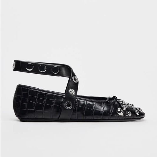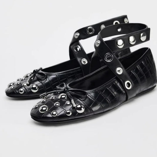 Studded Strappy Bow Slip-Ons