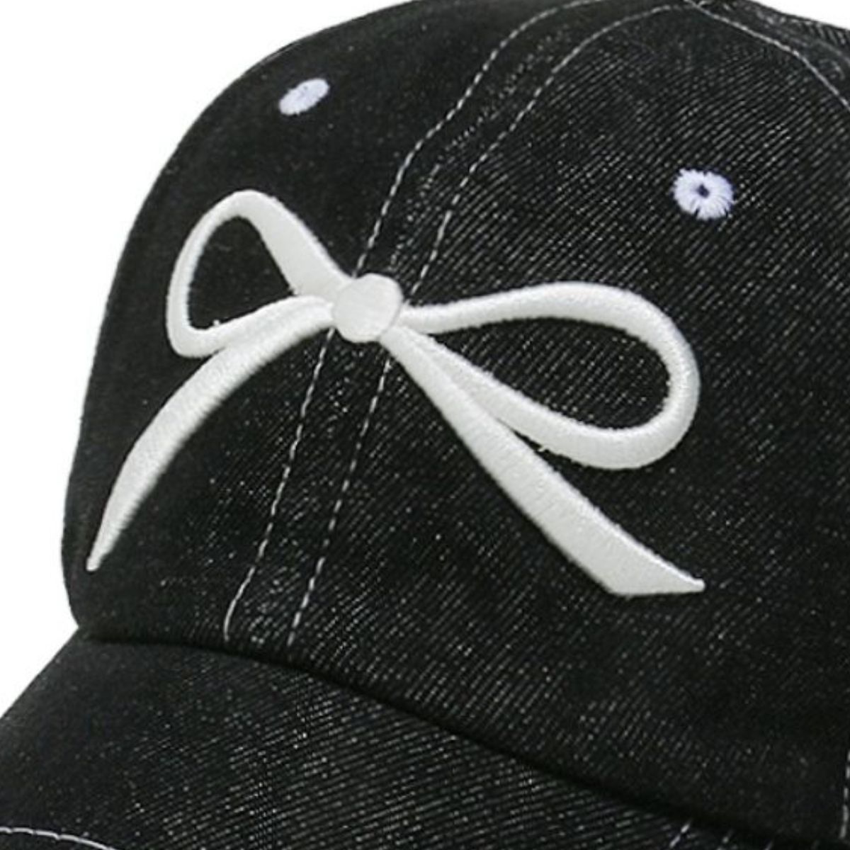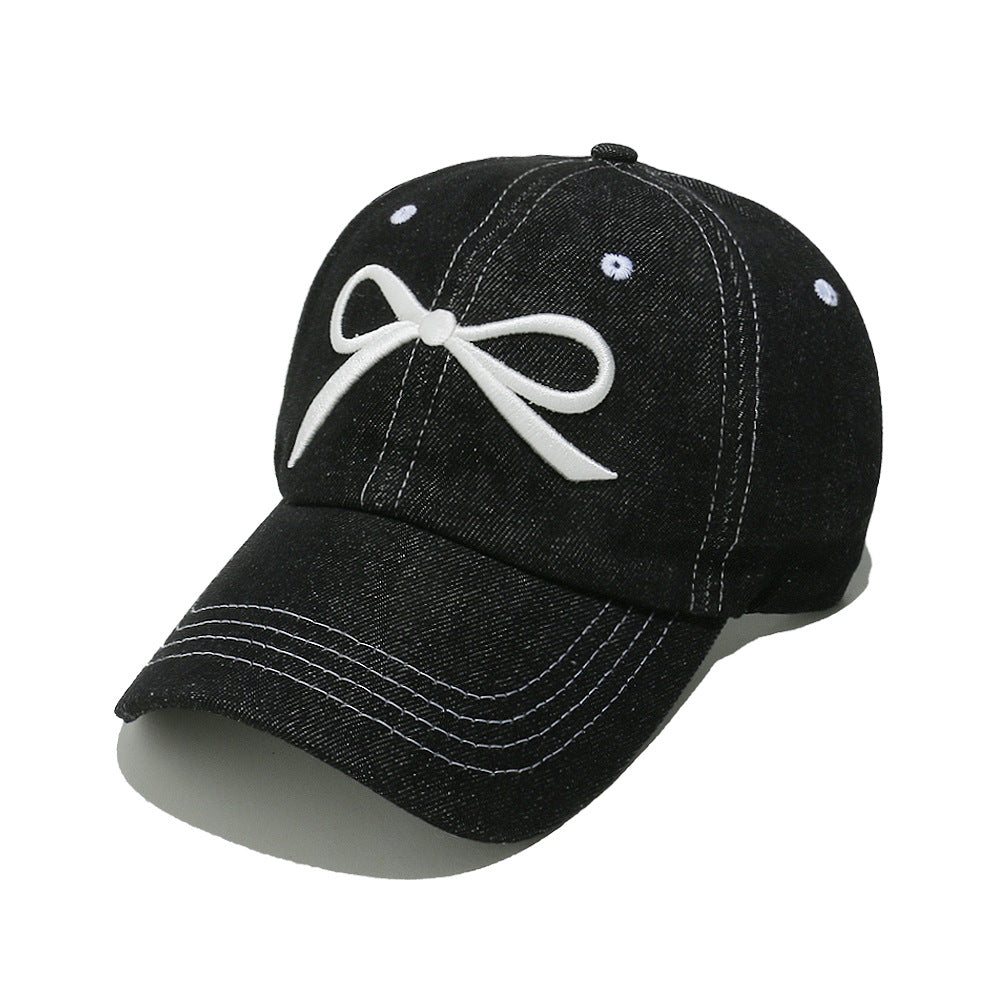 Bow Embroidered Denim Baseball Cap