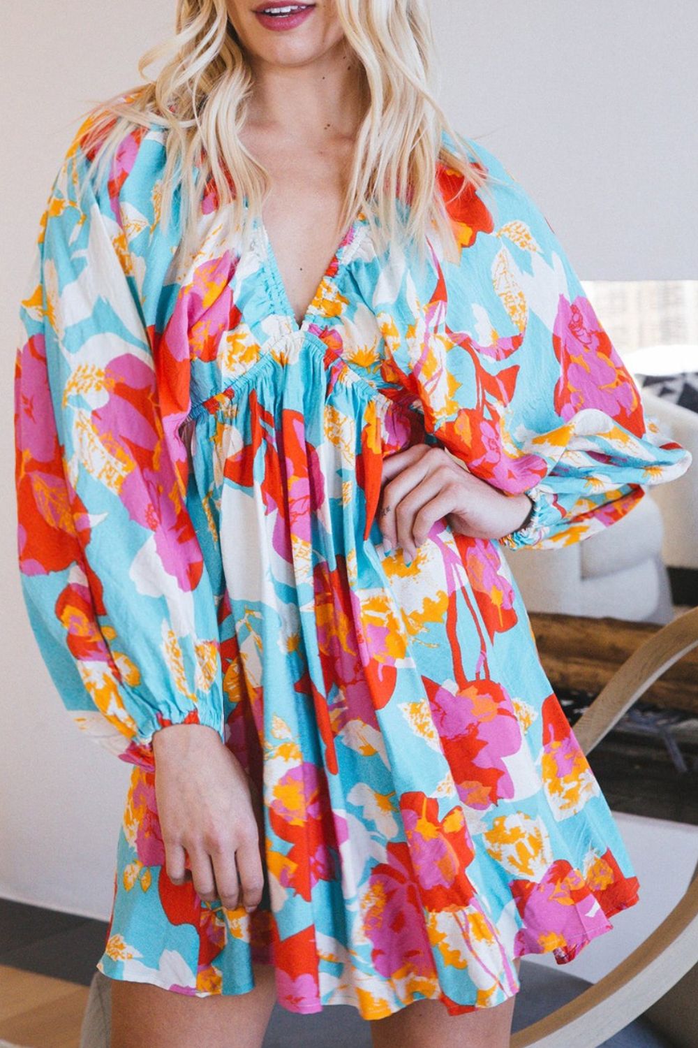 Floral Bracelet Sleeve Empire Waist Mini Dress