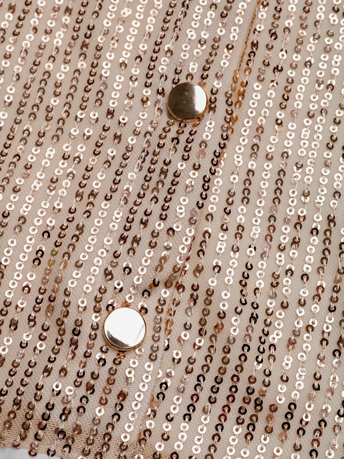 Perfee Sequin Contrast Collared Neck Long Sleeve Shirt