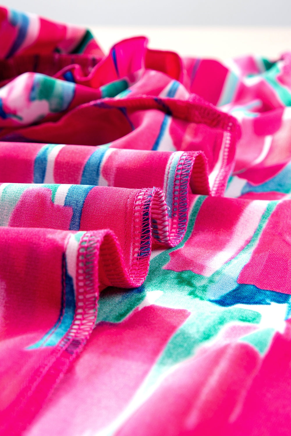Blusa con manga de pétalo y cuello redondo estampada de talla grande