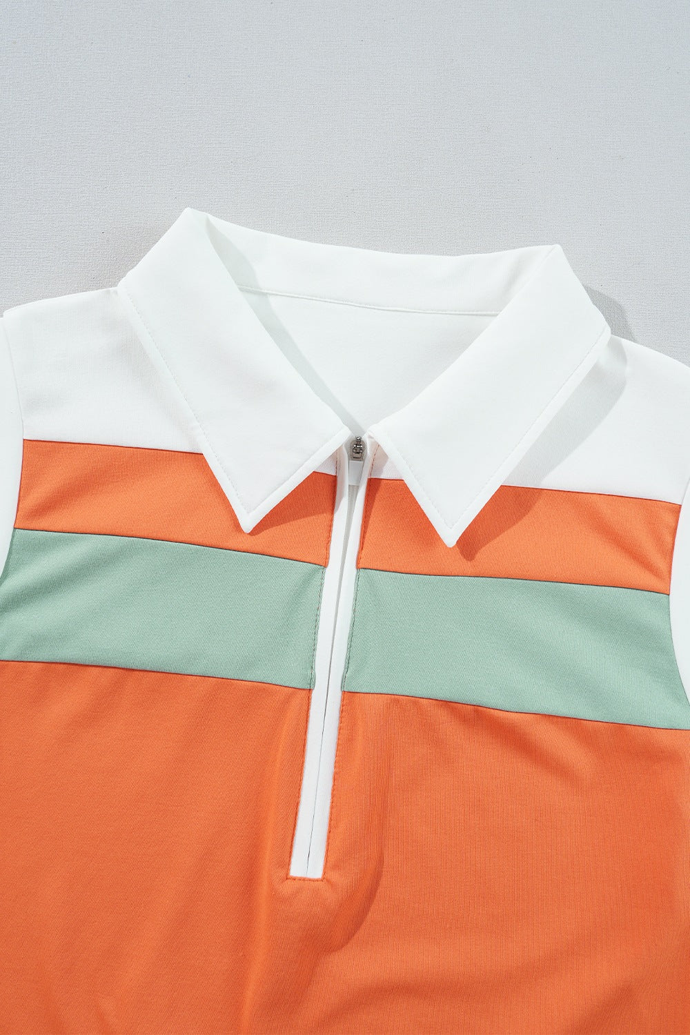 Quarter Zip Collared Neck Sleeveless Mini Dress