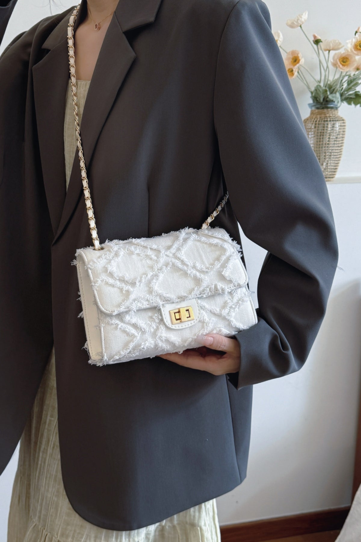 Raw Hem Denim Crossbody Bag