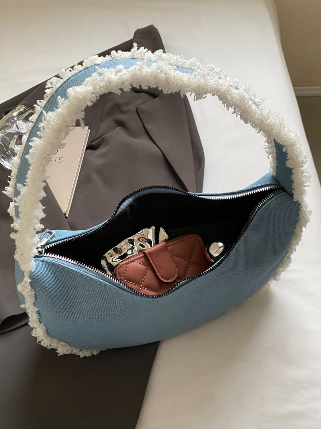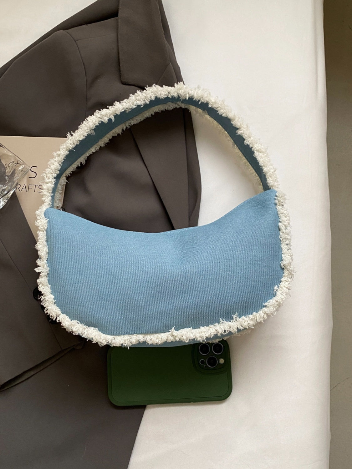 Raw Hem Denim Shoulder Bag
