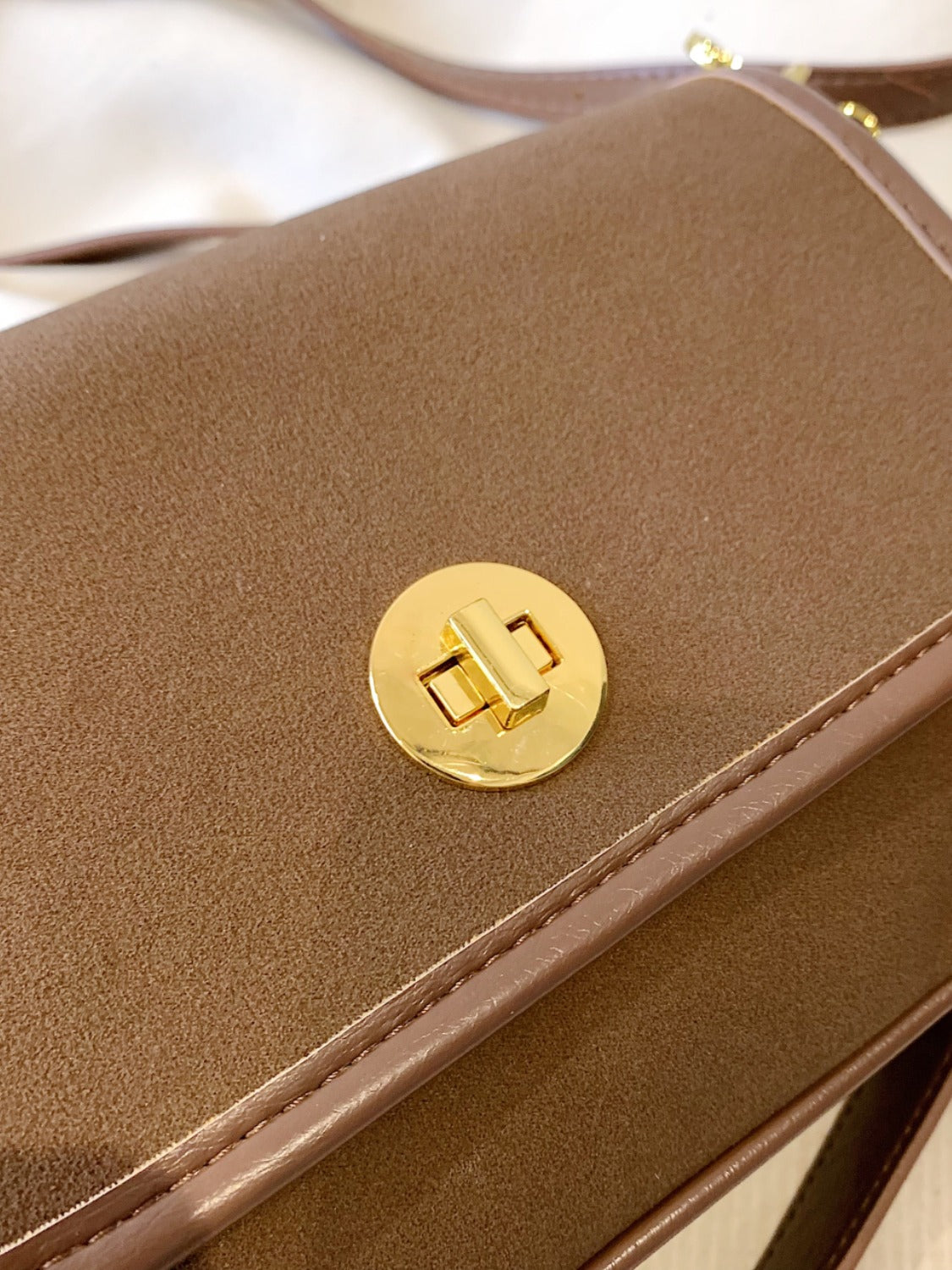 PU Leather Suede Twist-Lock Shoulder Bag