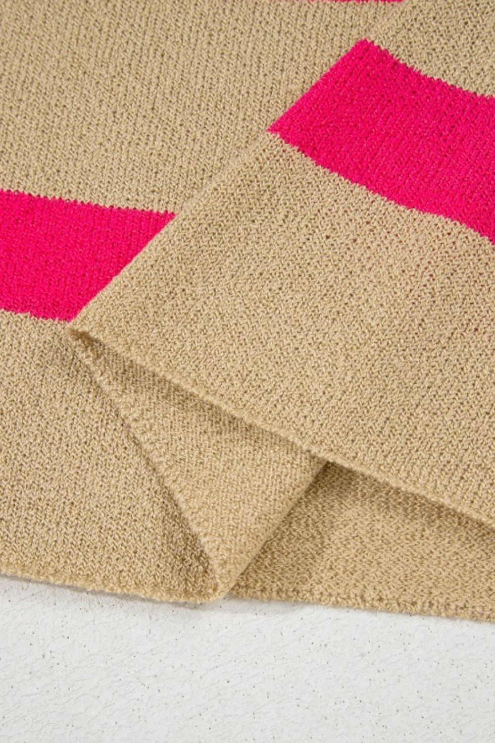 Contrast Striped Crew Neck Lightweight Knit Top