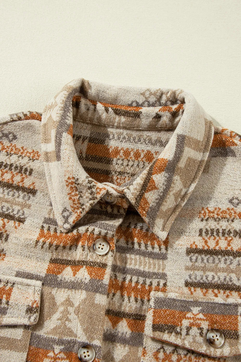Plus Size Geometric Collared Neck Long Sleeve Jacket