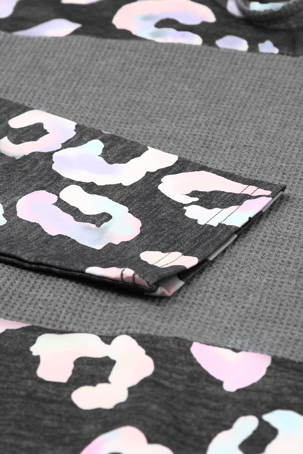 Plus Size Leopard Dropped Shoulder Long Sleeve Hoodie