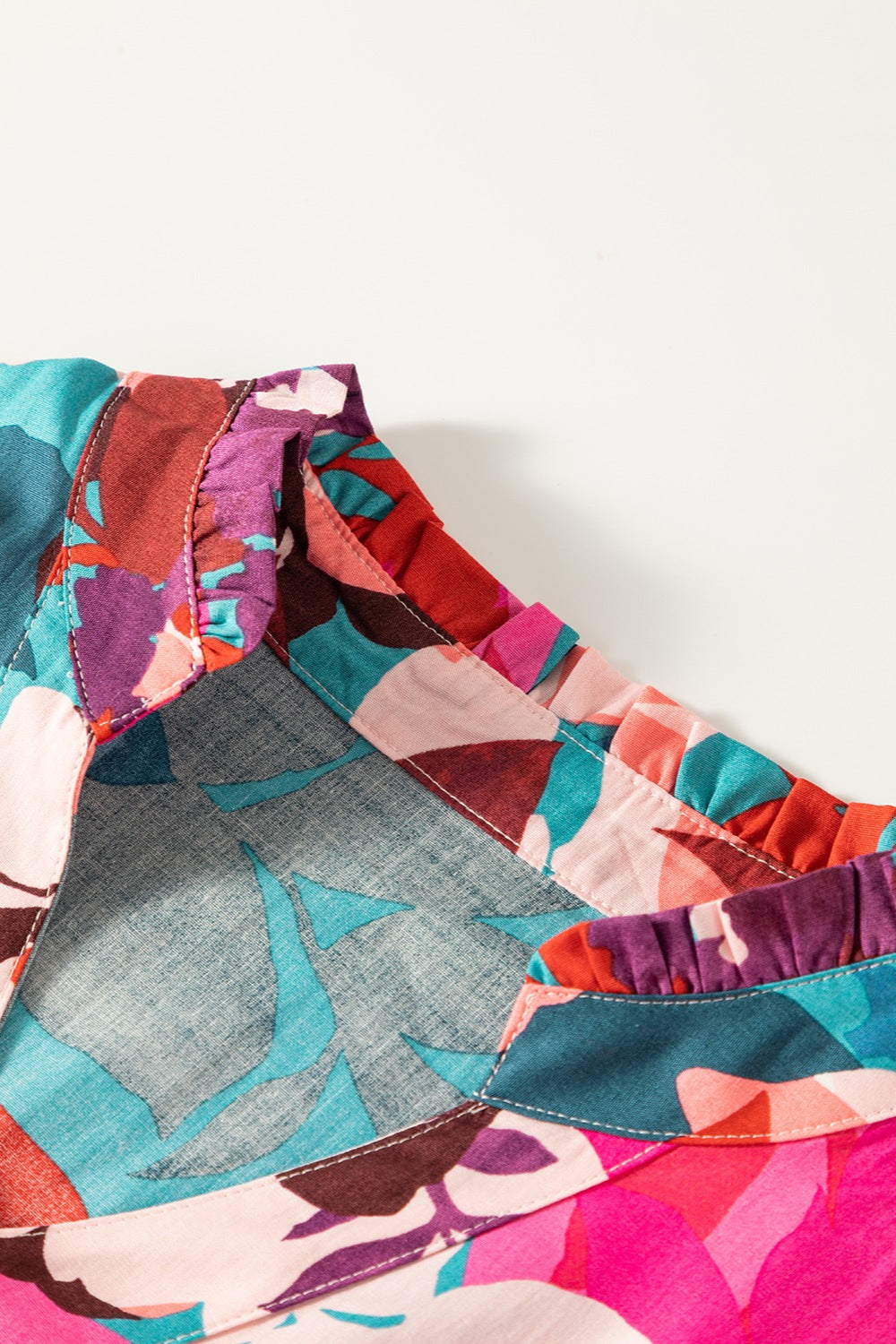 Printed Notched Puff Sleeve Blouse