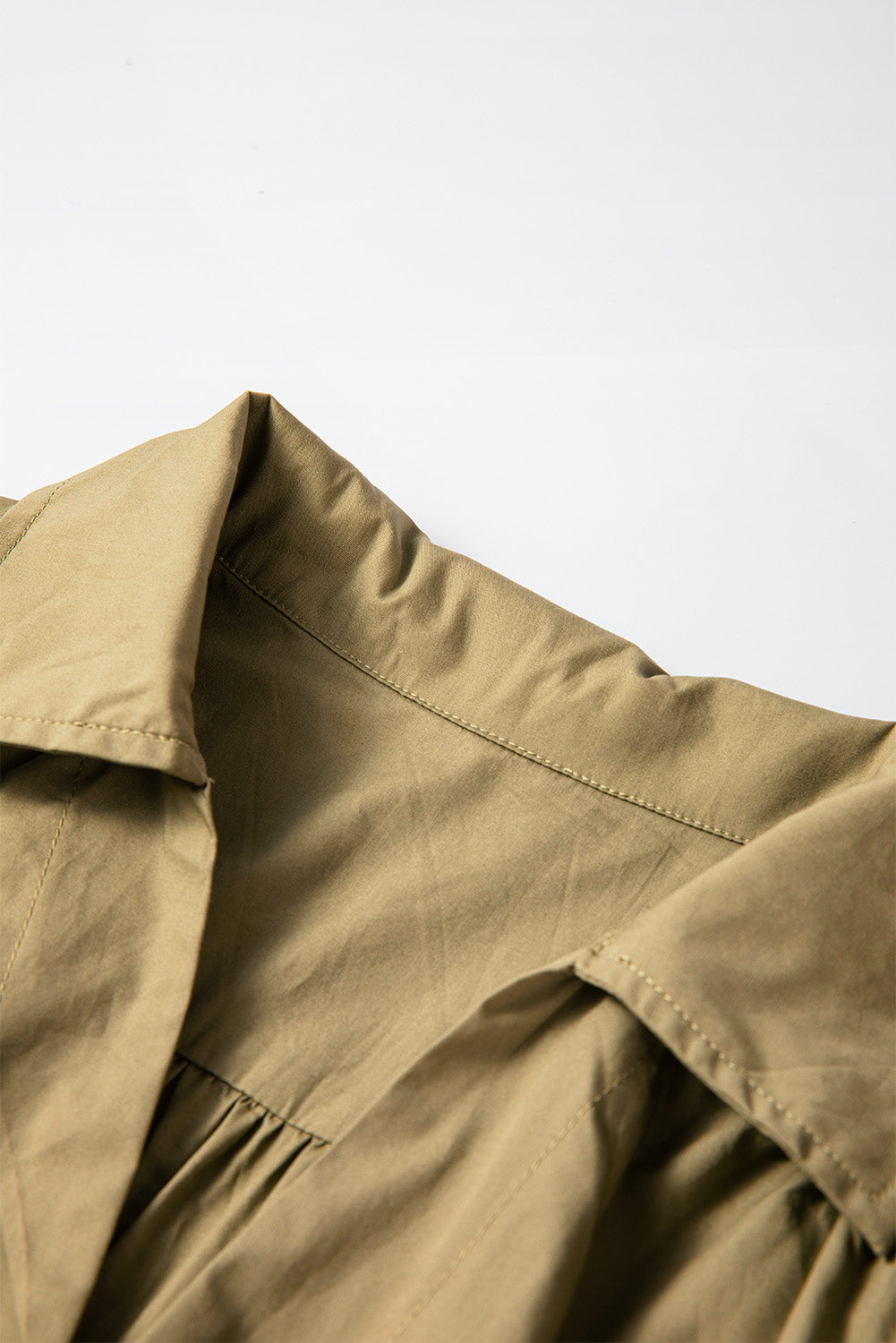 Smocked Johnny Collar Three-Quarter Sleeve Mini Dress