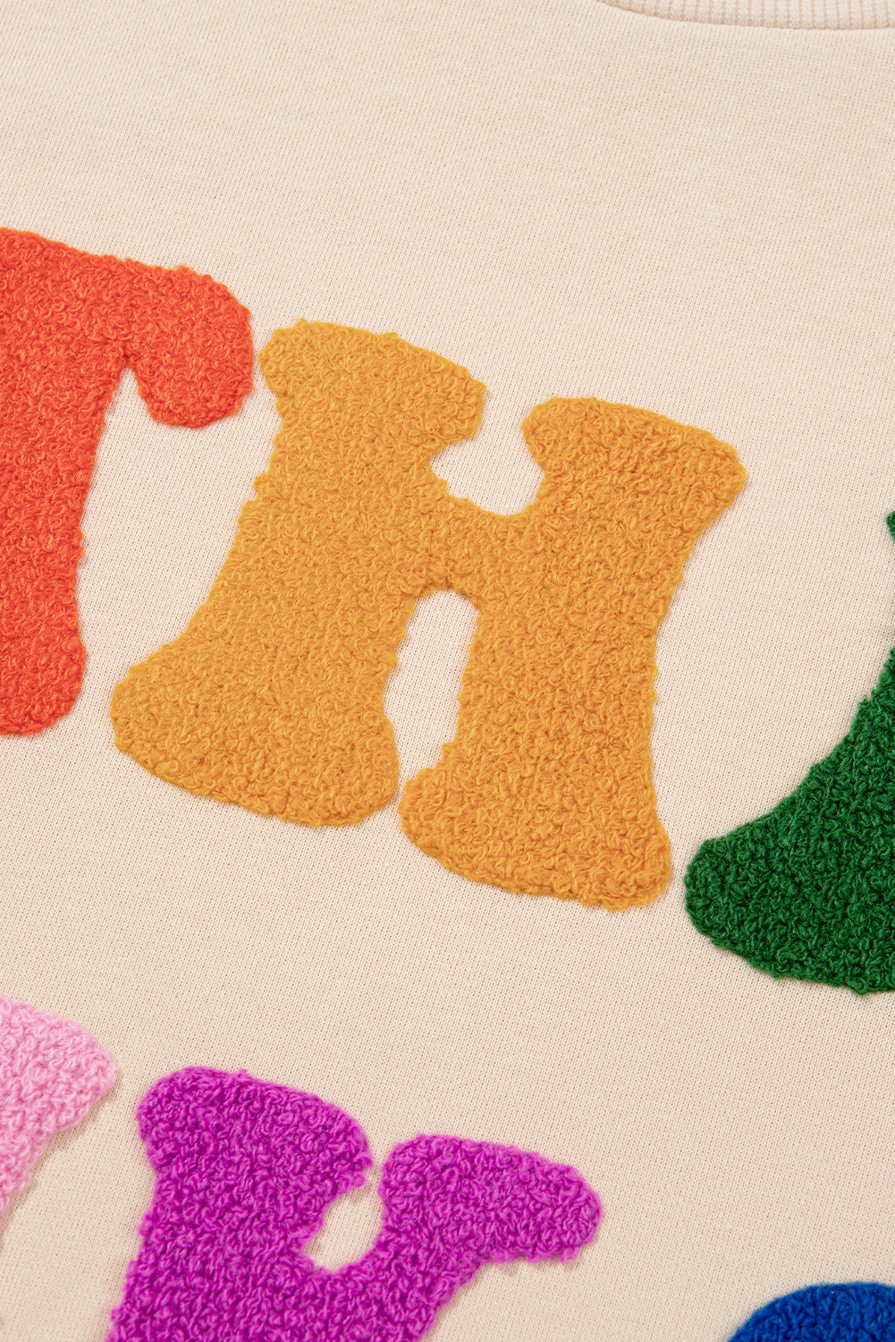 THANKS Round Neck Long Sleeve Sweatshirt